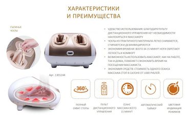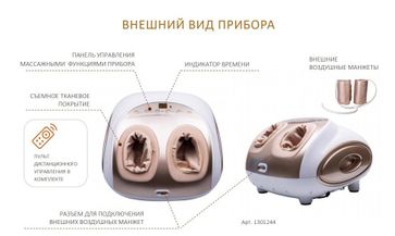 Массажер для ног премиум качества для профессионального роликового массажа стоп и голеней. Оснащен функцией прессотерапии. Избавляет от тяжести и усталости в ногах, активирует лимфодренаж, снимает болевые синдромы. None Возможен самовывоз. Есть доставка.