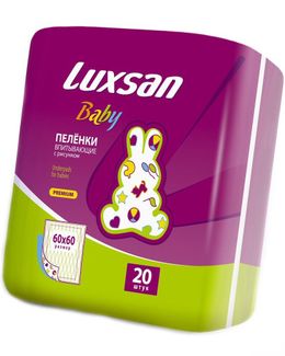 Отличные впитывающие пелёнки Baby 60х60 с красочным рисунком для малышей. Luxsan – изделия европейского качества, изготовленные при строгом соблюдении международных стандартов. Продукция зарегистрирована Федеральной Службой по Надзору в Сфере Здравоохранения и Социального Развития Регистрационное Удостоверение № ФСР 2011/10226 11.03.2011г. / ТУ9398-001-68961053-2010г. Пеленки мягкие на ощупь, выполнены из экологически чистого гипоаллергенного материала, не раздражающего нежную кожу малыша. Состоят из трех слоев: верхний представлен нетканым материалом, который не раздражает нежную кожу малыша. В качестве адсорбирующего слоя используют распущенную целлюлозу, отбеленной без использования хлора. Благодаря длинноволокнистой структуре адсорбента жидкость быстро впитывается и равномерно распределяется внутри. Одной пеленки хватает на длительное время. Минимальная сумма заказа 1500 руб. Возможен самовывоз. Есть доставка.