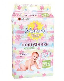 Подгузники Maneki Fantasy M 6-11 кг в упаковке 62 шт. Отлично впитывают влагу и не протекают. В области талии - эластичный пояс, манжеты - мягкие резинки. Минимальная сумма заказа 1500 руб. Возможен самовывоз. Есть доставка.