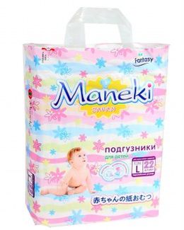 Maneki Fantasy - японские подгузники для детей от 6 месяцев и старше. Весовая категория - 9-14 кг. Быстро впитывают влагу, материал не вызывает раздражений. Минимальная сумма заказа 1500 руб. Возможен самовывоз. Есть доставка.