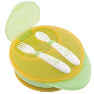 Нескользящее покрытие придает тарелочке особую устойчивость. Герметичная крышка сохраняет вкус и свежесть продуктов. Встроенный контейнер позволяет содержать ложку и вилку в порядке и чистоте. Нескользящие вставки на ручках столовых приборов облегчают малышу обращение с ними. Тарелочка удобна в дороге: даже вне дома ребенок сможет есть из своей посдуы. Состав: пластик Дополнительные характеристики: с 4 мес. None Можно купить без предварительного заказа.