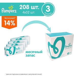 - Pampers Active Baby-Dry 3 размер 5-9 кг 208 шт по выгодной цене 3 165 р. руб.;