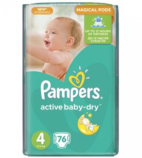 - Pampers Active Baby-Dry 8-14 кг 4 76 шт. по выгодной цене 1 501 р. руб.;
