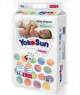 Подгузники Yokosun, размер - L, для детей весом от 9 до 13 кг, количество - 54 шт., производитель - Россия Минимальная сумма заказа 1500 руб. Возможен самовывоз. Есть доставка.