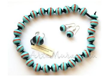 Закажите Комплект Trico бирюзовый: ожерелье, кольцо, серьги у компании ArteMurano.ru - украшения из муранского стекла (Венеция) в Россиина портале Alloy: