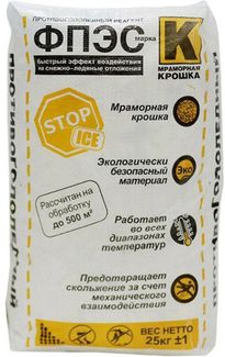 - ФПЭС реагент К мраморная крошка до -50°C (25кг) ФПЭС реагент противогололедный марка К мраморная крошка до -50°C (25кг) по выгодной цене 266 р. руб.;