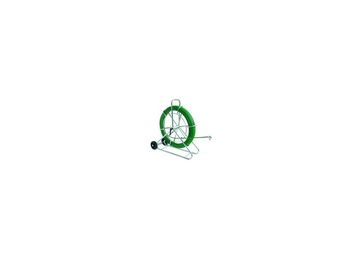 Устройство для протяжки кабеля FIX со стекловолоконным прутком Ø 7,5 мм и зеленым полипропиленовым покрытием, с оцинкованным стальным барабаном Ø 630 мм, в вертикальном исполнении колесами, в комплекте с кончными гильзами М12 и головкой для протяжки М12 с проушиной