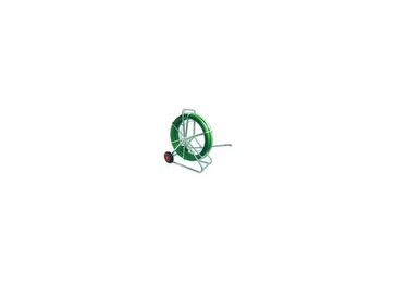 Устройство для протяжки кабеля POWER со стекловолоконным прутком Ø 11 мм и зеленым полипропиленовым покрытием, с оцинкованным стальным барабаном Ø 1000 мм, в вертикальном исполнении с колесами, в комплекте с кончными гильзами М12 и головкой для протяжки М12 с проушиной