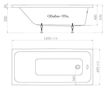 - Акриловая ванна Artex T 170х70х40 по выгодной цене 6 520 р. руб.;