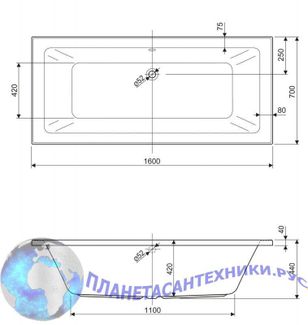 - Акриловая ванна CEZARES PLANE MINI 160х70х42 по выгодной цене 18 160 р. руб.;