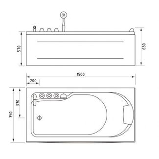 Акриловая ванна Gemy G9006-1.5 B L