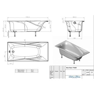 - Astra-Form Ванна Вега Люкс 170х80, литой мрамор в каталоге Ванны в России;