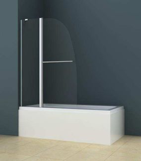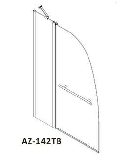 Душевая шторка на ванну AZ-142TB 70+30х140 с поручнем хром, 6мм прозрачное стекло