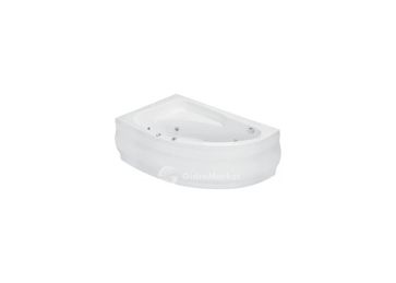 На кромке ванны находится кнопка регулировки интенсивности гидромассажа, обогащающая водный массаж воздухом. Регулятор дозирует воздух в систему боковых форсунок, форсунок для спины, а также форсунок для ступней. Длина, см :163; Ширина, см :103; Высота, см :63; Объем, л :250; Форма :угловые; Комплектация :-;