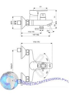Установка: на стену Монтаж на стандартных эксцентриках (в комплекте: эксцентрики,металлические отражатели, уплотнительные прокладки) Литой излив Длина излива от стены: 157-162 мм Угол поворота: нет Аэратор PERLATOR: есть Kерамический картридж 35 мм, функция HWTC без функции CLICK Металлическая рукоятка Индикатор холодной/горячей воды: есть Переключение ванна/душ: ручной керамический переключатель(позволяет использовать функцию "душ" даже при очень низком давлении воды) Обратный клапан: нет Душевой гарнитур в комплекте: нет Цвет: хром None