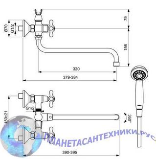 Назначение – смеситель для ванны; Установка - на стену; Система усиленной фиксации SmartFix: есть; Монтаж на стандартных эксцентриках (в комплекте: эксцентрики, металлические отражатели, уплотнительные прокладки); Материал корпуса и излива – 100% латунь; Излив – трубчатый поворотный; Угол поворота – 3600; Длина излива – 320 мм; Расстояние от стены до аэратора 382 мм(+/- 2 мм); Аэратор Perlator – есть; Керамические кранбуксы пр-ва Германии с поворотом 1800; Металлические рукоятки; Индикатор холодной/горячей воды: есть; Переключение ванна/душ – ручное (позволяет использовать функцию "душ" даже при очень низком давлении); Переключатель ванна/душ – керамический; Цвет – хром.
