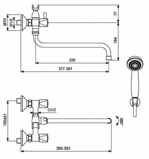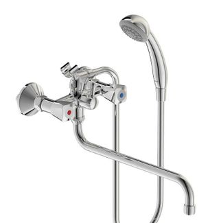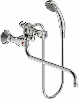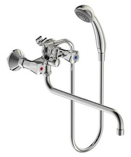 Смеситель для ванны/душа Установка: на стену Монтаж на стандартных эксцентриках (в комплекте: эксцентрики, металлические отражатели, уплотнительные прокладки) Трубчатый поворотный излив Длина излива: 320 мм Угол поворота 360? Аэратор PERLATOR: есть Керамические кранбуксы производства Германии с поворотом 180? Пластиковые маховики Индикатор холодной/горячей воды: есть Переключение ванна/душ: ручное (позволяет использовать функцию "душ" даже при очень низком давлении воды) Обратный клапан: нет Душевой гарнитур в комплекте: да None Страна производства: Болгария