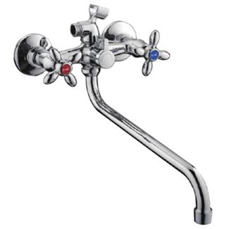 Латунный смеситель Frap F2227-2 для ванны с картриджным переключателем в корпусе. Оснащён двумя вентилями с керамическими кран-буксами в латунной оболочке и изливом длиной 32 см. None Страна производства: Китай