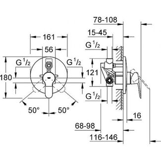 Смеситель Grohe BauEdge с внутренней частью, 29079000