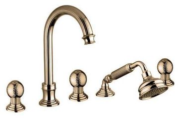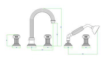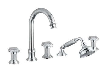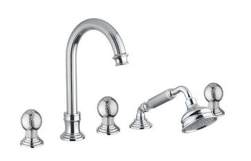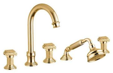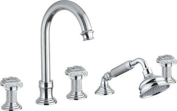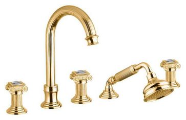 Управление: вентильное Материал: латунь Исполнение: хром, бронза, золото 24 карат Длина излива: 15.5 см Механизм: керамическая кран-букса Отверстия для монтажа: 5 отверстий Тип подводки: 1/2" Оснащение: душевой шланг, душевая лейка, крепления, аэратор, гибкая подводка, дивертор Рабочий интервал давления в водопроводной сети: 0,5-6,0 Атм Гарантия: 5 лет с даты продажи (за исключением резиновых уплотнителей, шлангов, переключателей)