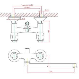 Смеситель ZOLLEN NURNBERG (арт. NU62620141) для ванны нижний изл. 320мм с аксес.