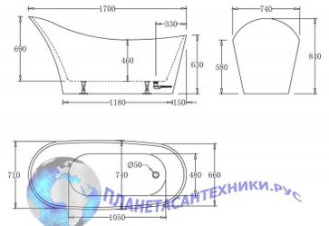 Закажите Ванна акриловая отдельностоящая BELBAGNO BB64-1700 у компании Планета сантехники в России на портале Alloy: