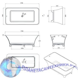 - Ванна из искусственного камня Aquanet Bloom Curve TC-S91 170x73, глянцевая в каталоге Ванны в России;