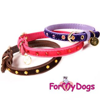 Мягкий велюровый ошейник, ;украшенный стразами в цвет велюра. Имеет подвеску с логотипом ForMyDogs. Внутренняя часть - искуственная кожа.