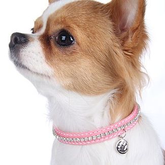 Поводок из мягкой искусственной кожи, украшенный тесьмой с кристаллами.