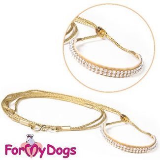 Закажите Ринговка для собак ForMyDogs цвет Золото с белыми кристаллами DS02-11-2012 G W у компании www.zoostyle-ekb.ru - Одежда для собак в России на портале Alloy: