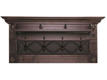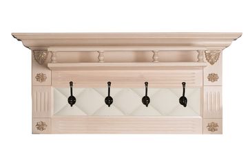 Настенная вешалка «Сильвия Н5» Несмотря на свой размер, создает сильный классический акцент в прихожей. В отличии от модели «Н3», эта вешалка оставляет открытой стену. Это имеет значение, если стена в прихожей хорошо отделана и владелец хочет продемонстрировать качество отделки.Четыре крючка расположены в зоне с имитацией капитоне, выполненной из экокожи, и обрамленной массивной рамой с фрезеровками, создающими эффект пилястр. Рама изготовлена из массива березы. Декоративные объемные элемент...