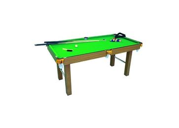 Материалы: корпус и ножки стола - ламинированный MДФ. В комплект входят: 2 деревянных кия, набор шаров, треугольник, щетка. Размеры: 164х84 см. None
