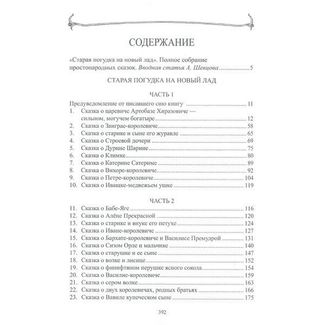 Старая погудка на новый лад - сборник сказок (1794-1795), составивший основную часть тома. Читая книгу, вдохновляешься глубиной русского языка, красотой сюжетов. Читая "предуведомление", оставленное автором-составителем, возникает чувство благодарности к человеку, который смог сохранить эти кусочки русской культуры: "Но может быть, некоторые начнут на меня за сие роптать, для чего я время употребил на то маловажное дело и для чего не занимался каким-нибудь поважнее..." В дополнение к трем частям Старой погудки были размещены еще четыре сказки отдельных изданий. None