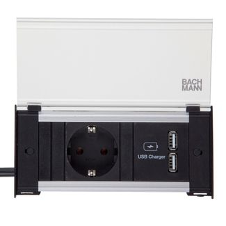 Встраиваемый блок розеток Bachmann Kapsa с 1х220 розеткой + 2 USB зарядки, в комплекте с разборной вилкой, кабелем 2 метра и защитной крышкой в белом цвете. None