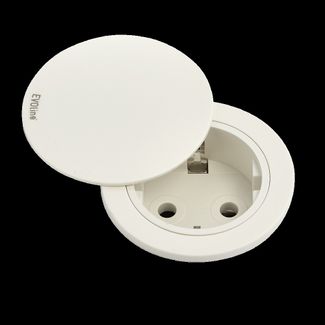 Встраиваемая розетка EVOline One с 1эл. разъемом. кабелем 3 метра и крышкой. Компактная модель, для установки в поверхности от 50 мм, d врезки 54 мм, для крепежной системы требуется всего 9 мм. Для установки в любые типы поверхностей, в том числе для мягкой мебели. None
