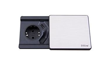 Розетка Evoline Square80 со сдвижной крышкой, 1 электрическая розетка с заземлением (кабель 3м), USB разъем для подзарядки мобильных телефонов, планшетов и др. None