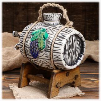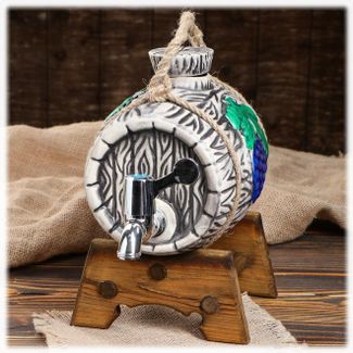 Подарочный керамический бочонок для вина "Дегустатор" объёмом 2,5 литра - стильный подарок со вкусом, который порадует гостей своим привлекательным внешним видом и не раз соберёт в Вашем доме близких и друзей. Такой винный набор с художественной ручной росписью, идеально вписываясь в любой интерьер, способен украсить домашний бар ценителя этого благородного напитка.