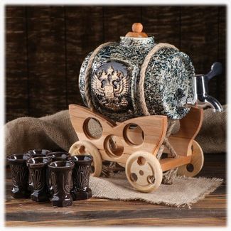 - Бочонок 2,5л Герб России винный с 6 рюмками по выгодной цене 3 750 р. руб.;