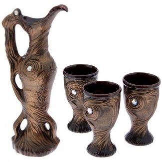 Подарочный керамический кувшин "Византия" объёмом 1,1 литр с 3 бокалами - стильный подарок со вкусом, который порадует гостей своим привлекательным внешним видом и не раз соберёт в Вашем доме близких и друзей. Такой набор ручной работы, идеально вписываясь в любой интерьер, способен украсить домашний бар настоящего ценителя.