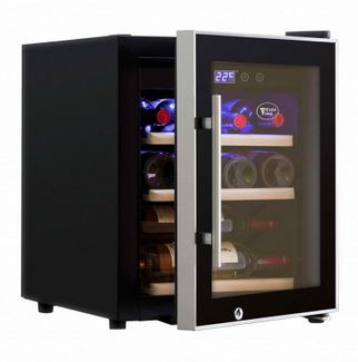 Макс. кол-во бутылок (бордо), шт. 12. Кол-во температурных зон 1. Диапазон температуры , °C от +5 до +20. Вид охлаждения Динамический. Тип охлаждения Компрессорный. Объем, л 38. Количество полок, шт. 3. Материал полок Дерево (массив бука). Цвет корпуса Чёрный. Размеры ВхШхГ мм 515х395х520. None Возможен самовывоз.