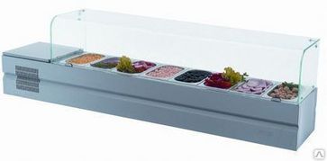 Витрина холодильная Болоньезе-8М, температурный режим +2…+6С, на 8 гастроемкостей GN 1/4 (гл.150мм) в комплекте, 220В, 0.16кВт, 1680х310х475, вес 71,5 кг. Дополнительное описание: Витрина настольная «Болоньезе» предназначена для кратковременного хранения и демонстрации компонентов пиццы (топингов). Данная витрина изготовлена из нержавеющей стали, предназначена для установки гастроемкостей. Температурный режим витрины +2°…+6°С обеспечивает долгую сохранность компонентов пиццы. Легкий доступ к гастроемкостям помогает легко и быстро начинить пиццу, а стильный дизайн позволяет витрине вписаться в любой интерьер. Важной особенностью этих витрин является специальная система охлаждения, захолаживающая объем с трех сторон. Витрина работает на хладагенте фреон 134а. Для дополнительного удобства витрины снабжены выносным дополнительным столиком размером 300х300мм. Гастроемкости входят в комплект - 8 шт GN 1/4 (глубина 150 мм). None