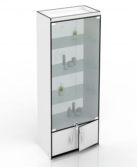Витрина "Универсал" №106-С (задняя стенка стекло) Белый с черной кромкой