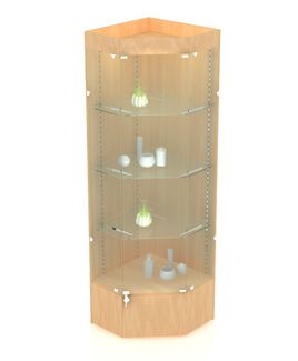 - Витрина "Универсал" №704 угловая стеклянная с подсветкой Светлый бук в каталоге Витрины в России;