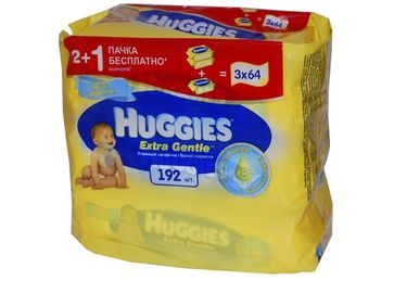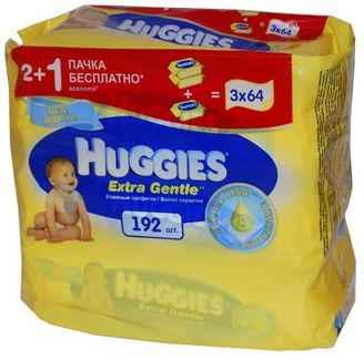 - Влажные салфетки Huggies (Хаггис) Extra Gentle 192 шт по выгодной цене 212 р. руб.;