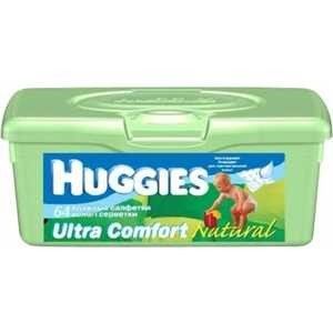 - Влажные салфетки Huggies (Хаггис) Ultra Comfort Natural 64шт по выгодной цене 110 р. руб.;