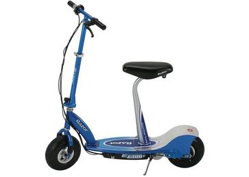 Электроскутер Razor E300 с сиденьем синего цвета предназначен для тех, кто любит скорость и комфорт.