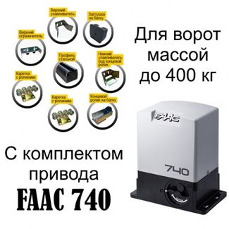 Привод 740 E, блок управления 740 D, 230В, магнитные концевики, консистентная смазка, с монтажной пластиной. Каретка с роликами (стальные ролики на закрытых шарикоподшипниках, антикоррозийная обработка, рассчитаны на 50000 откатов)- 2 шт., Профиль стально Комплект электропривода (привода) FAAC 740 E PLUS Есть доставка.