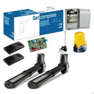 Комплект для автоматизации распашных ворот, до 800 кг и 3,0 м, интенсивность 30%. Состав комплекта: 2 привода, блок управления, радиоприемник, 2 пульта, антенна, сигнальная лампа Бесплатная доставка в регионы России Есть доставка.