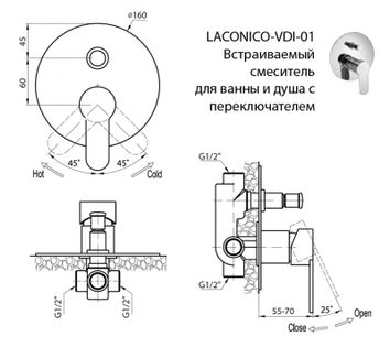Встраиваемый двухпозиционный смеситель CEZARES LACONICO-VDI LACONICO-VDI-BLC