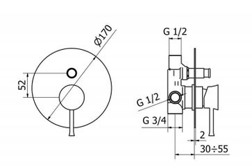 Встраиваемый двухпозиционный смеситель CEZARES POSITANO-VDIM-01 POSITANO-VDIM-01